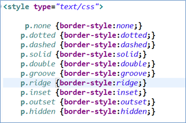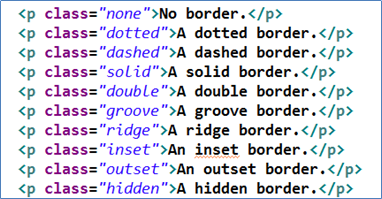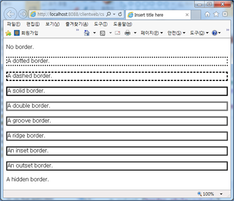 다음과 같이 CSS속성을 적용할 컨텐츠를 정의한다. “border-style”을 테스트한 문서의 위쯤에 정의하면 된다.