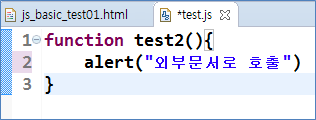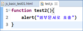 위에서 외부 파일로 자바스크립트 파일을 열고 코드에 한글을 추가해봅시다.