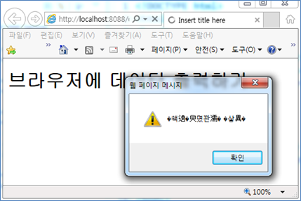 실행하면 다음과 같이 한글이 깨져서 나타납니다.