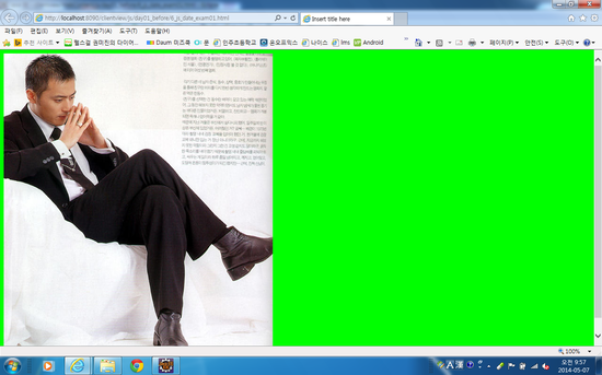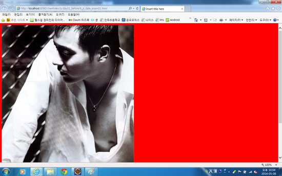 다운받은 이미지 파일은 images폴더에 copy하고 다음과 같은 조건을 적용하여 결과가 나타나도록 작성하세요.(js_date_exam02.html)
