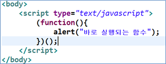 즉시 실행되는 함수는 주로 jQuery나 다른 자바스크립트 프레임워크에서 사용될 것이다.