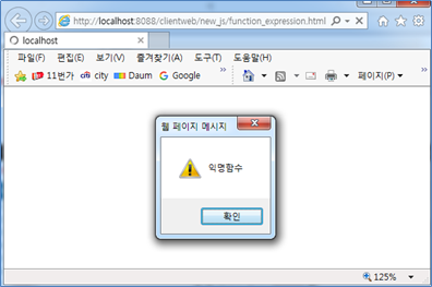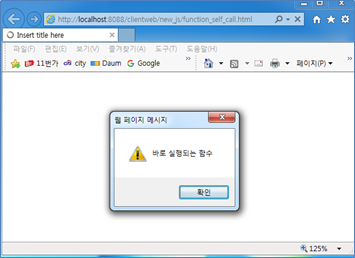 실행해보자. 다음과 같이 익명함수가 페이지 로딩시에 실행되는 것을 알 수 있다