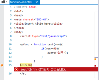 test함수명을 인식하지 못하는 것을 확인할 수 있다. 표현식으로 정의된 함수의 함수명은 함수내부에서만 사용할 수 있고 함수 외부에서는 사용할 수 없다.