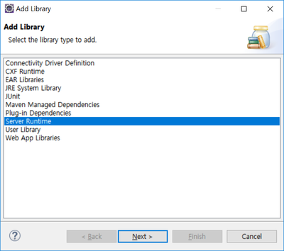[Add Library] 대화 상자에서 "Server Runtime"을 선택합니다.