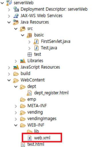 서블릿명은"first"로 요청 path는"/first.do"로 등록해보도록 하겠습니다. 먼저 web.xml을 오픈합니다.
