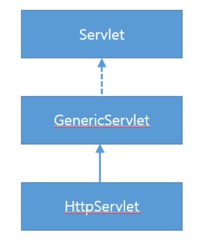 일반 클래스로 작성하면 서버가 호출할 수 없으므로 반드시 서블릿 클래스의 하위 클래스로 작성해야 합니다. 다음과 같은 상속관계에 있는 클래스를 상속받아 작성합니다. 우리가 서블릿을 만들어서 실행할 환경이 웹 환경이고 웹은 http 프로토콜을 사용하므로 대부분은 HttpServlet을 상속받아 서블릿을 작성합니다.