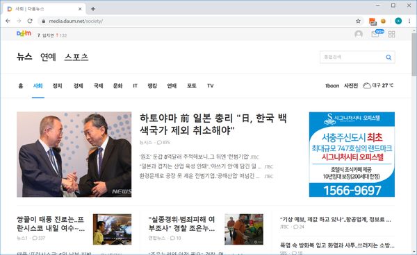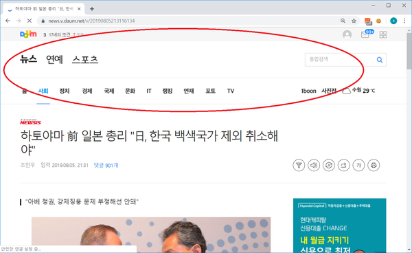 예를 들어 www.daum.net에 접속하여 하나의 기사를 선택하여 읽어보도록 하겠습니다. 아래와 같은 화면이 나타날 텐데요.