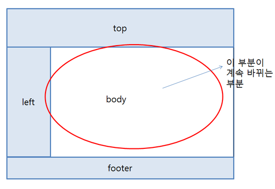 우리가 웹사이트를 서핑하다 보면 메뉴에 해당하는 부분이 고정되어 있고 아래쪽의 내용만 계속 바뀌는 형태로 작성된 것을 볼 수 있습니다.