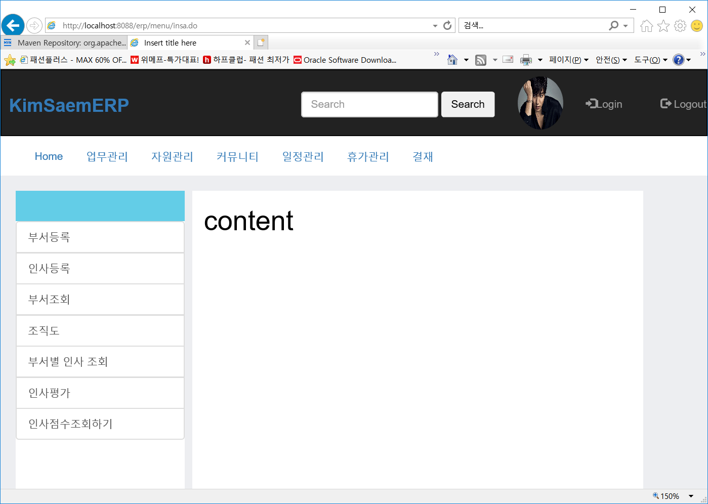 [top.jsp에서 "업무관리"를 선택하는 경우]