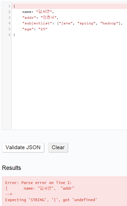 유효하지 않다면 다음과 같이 error메시지가 출력되는 것을 확인할 수 있습니다.