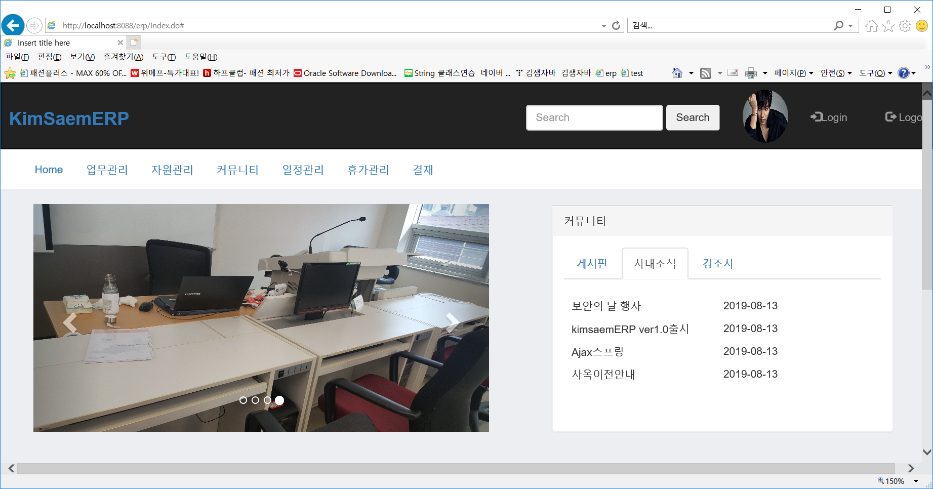 사내소식, 경조사, 게시판을 각각 선택하면 Ajax로 각 카테고리별 데이터를 가져올 수 있도록 작업합니다.