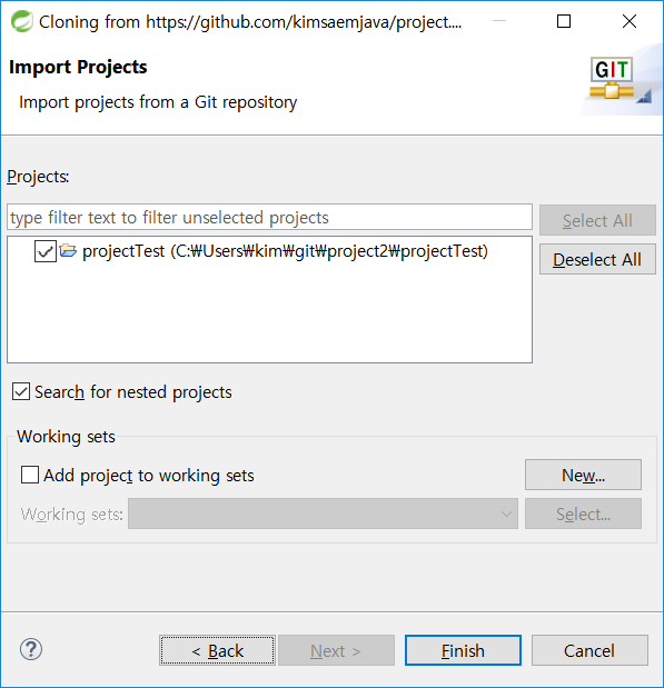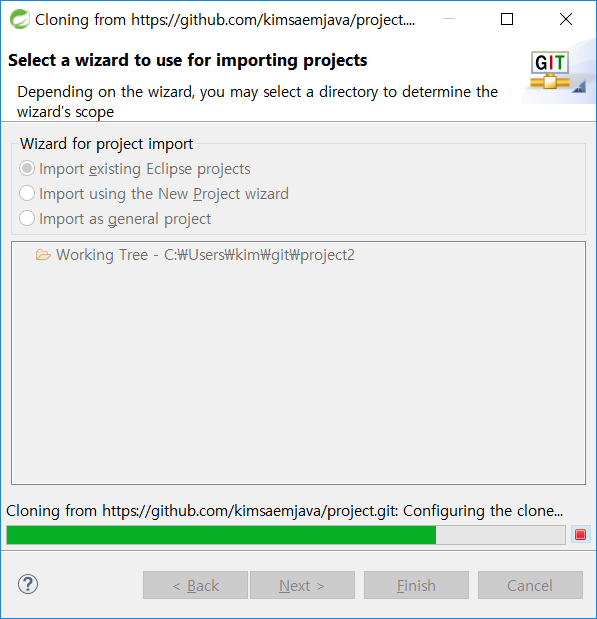 import할 프로젝트를 마지막으로 선택하고 [Finish] 버튼을 누릅니다.