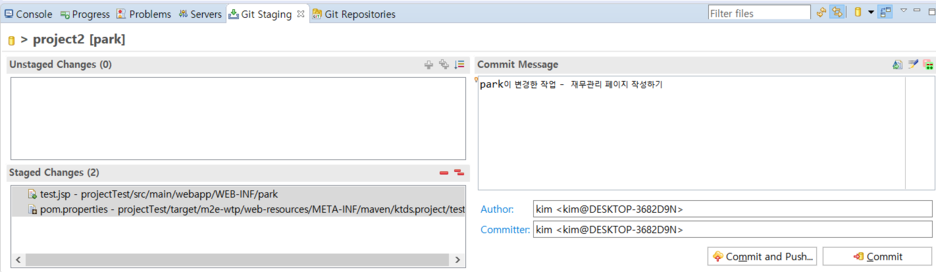 각자의 브랜치에서 각자의 이름으로 폴더를 하나 만들고 test.jsp 파일을 추가합니다.