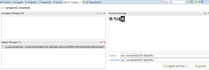 수동 편집을 한 후 로컬 저장소로 commit 합니다.