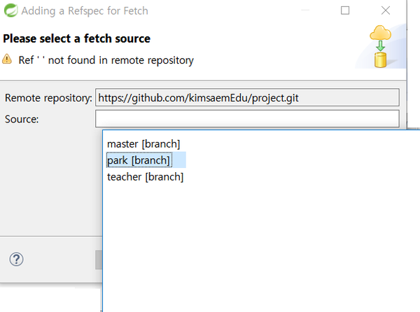 이런 방법으로 모든 팀원들의 브랜치를 모두 등록해야 합니다.