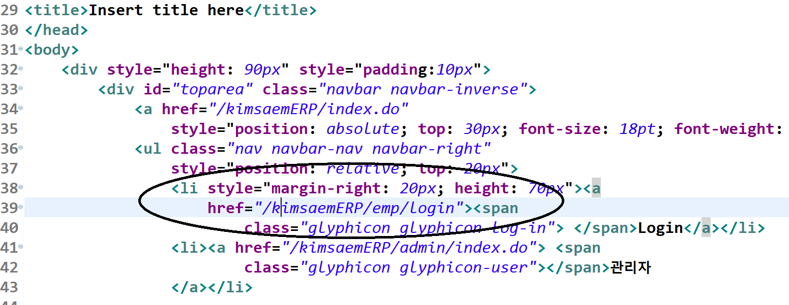 top.jsp의 요청 path도 /kimsaemERP/emp/login으로 변경합니다.