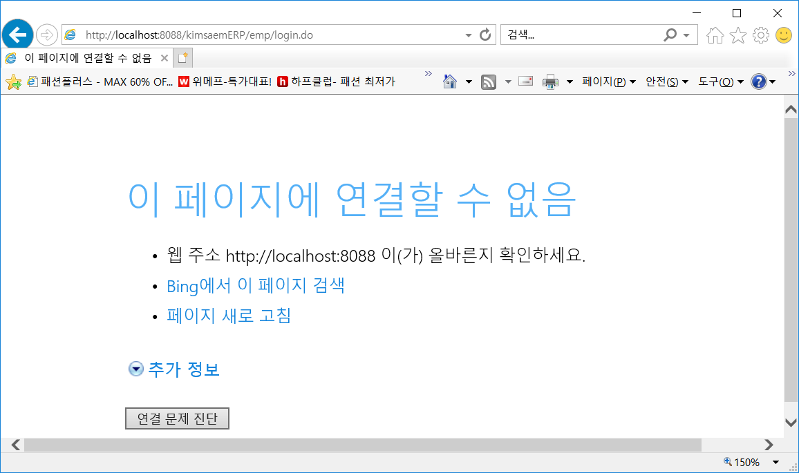 kimsaemERP을 요청하면 처음부터 권한을 적용해 놓았기 때문에 다음과 같이 오류가 발생합니다.
