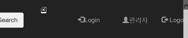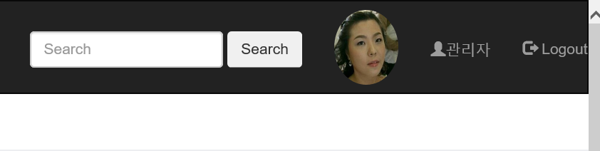 관리자 계정으로 접속하면 프로필 사진, "관리자"메뉴 , "Logout" 메뉴가 보입니다.