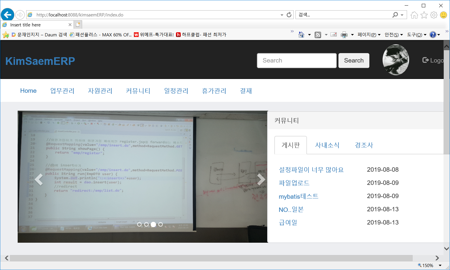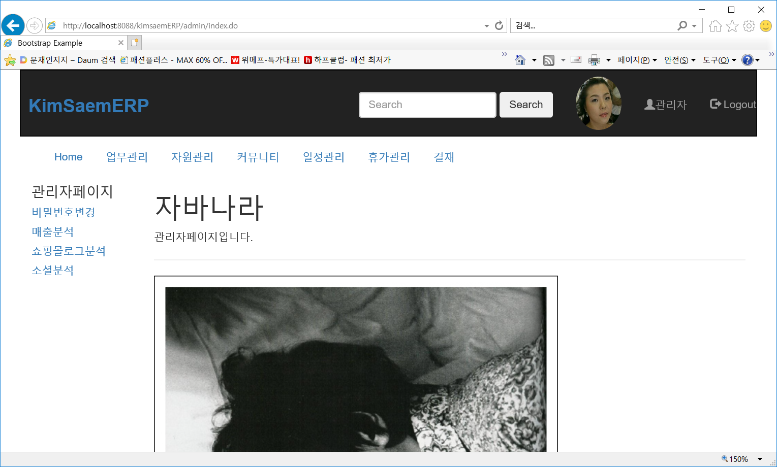 관리자 권한을 갖고 있는 사용자 아이디로 접속하면 "/admin/index.do"로 접속됩니다.