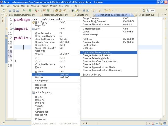 이클립스의 자동완성 기능을 이용하여 getTableCellRendererComponent(...)메소드를 오버라