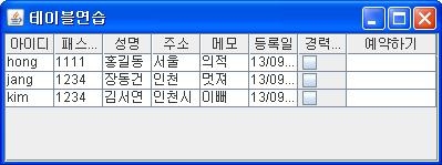 JTable의 셀에 JCheckBox나 JButton같은 컴포넌트를 추가하고 싶은 경우도 있을 것입니다.