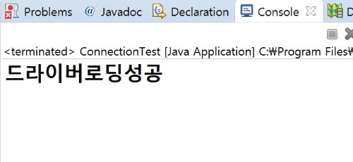콘솔에 "드라이버로딩성공" 메시지가 출력됐다는 것은 위의 코드인 Class.forName(...........) 명령문이 정상적으로 실행됐다는 의미입니다.