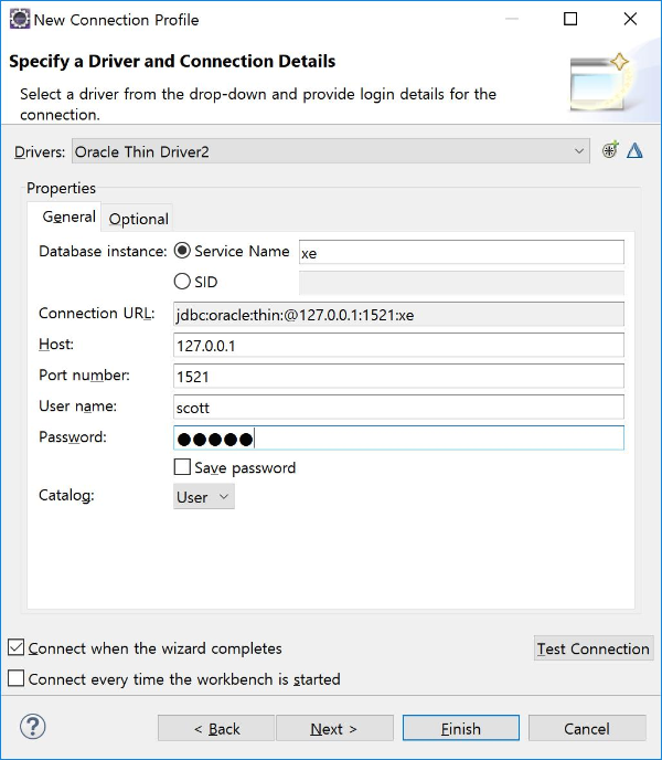 - Service Name은 xe입니다. 어떤 버전을 설치하냐에 따라 Service Name이나 SID를 설정하셔