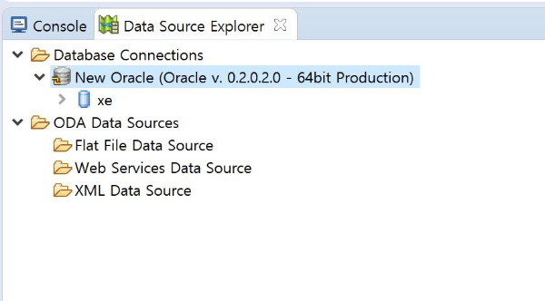 Console View 옆에 Data Source Explorer View가 추가됩니다.