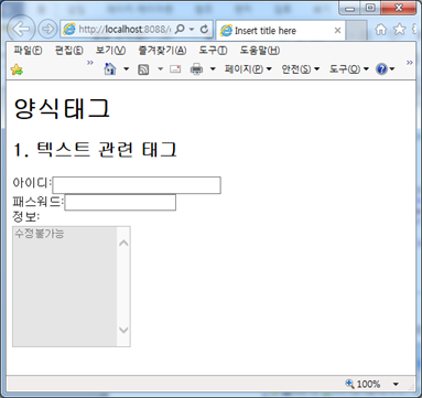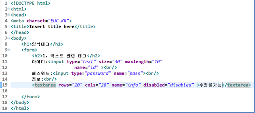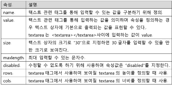 한 줄 텍스트, 패스워드, 여러 줄 텍스트를 나타낼 수 있으며 적용할 수 있는 속성은 다음과 같다.