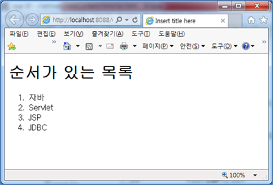 실행하면 순서가 있는 목록은 1. 2. 3….으로 목록 앞에 번호가 붙어서 응답되는 것을 확인할 수 있다.