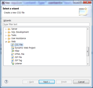 [New]대화 상자가 나타나면 “Web”에서 “CSS File”목록을 선택한다.