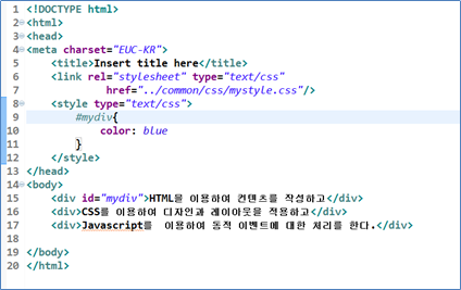 “id”속성을 원하는 위치에 정의한 후 <head>태그나 외부문서에 정의한 후 속성을 정의한다.