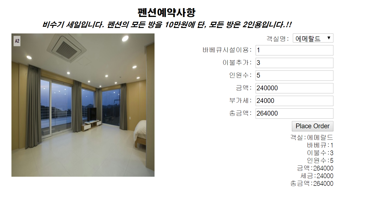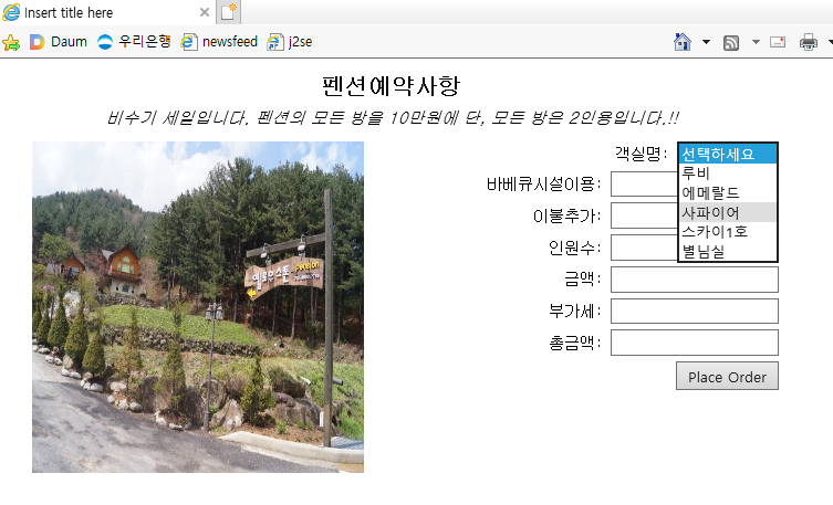 다음과 같이 객실명을 선택하면 객실별 이미지가 변경되도록 함수를 작성하세요.