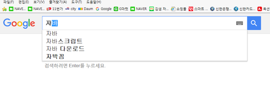 구글 사이트에서 검색어를 입력하면 페이지 리로딩 없이 검색어 목록이 계속 변경됩니다. 이는 Ajax가 적용된 예입니다.