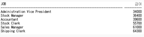 1. 각 직책 별(job_title)로 급여의 총합을 구하되 직책이 Representative 인 사람은 제외하십시오. 단, 급여 총합이 30000 초과인 직책만 나타내며, 급여 총합에 대한 오름차순으로 정렬하십시오. 출력 결과의 컬럼명은 아래 결과와 동일하게 주십시오.